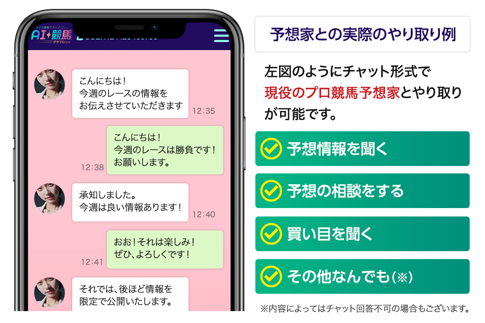 予想家と会員様との1対1専用チャットルームをご用意しております。